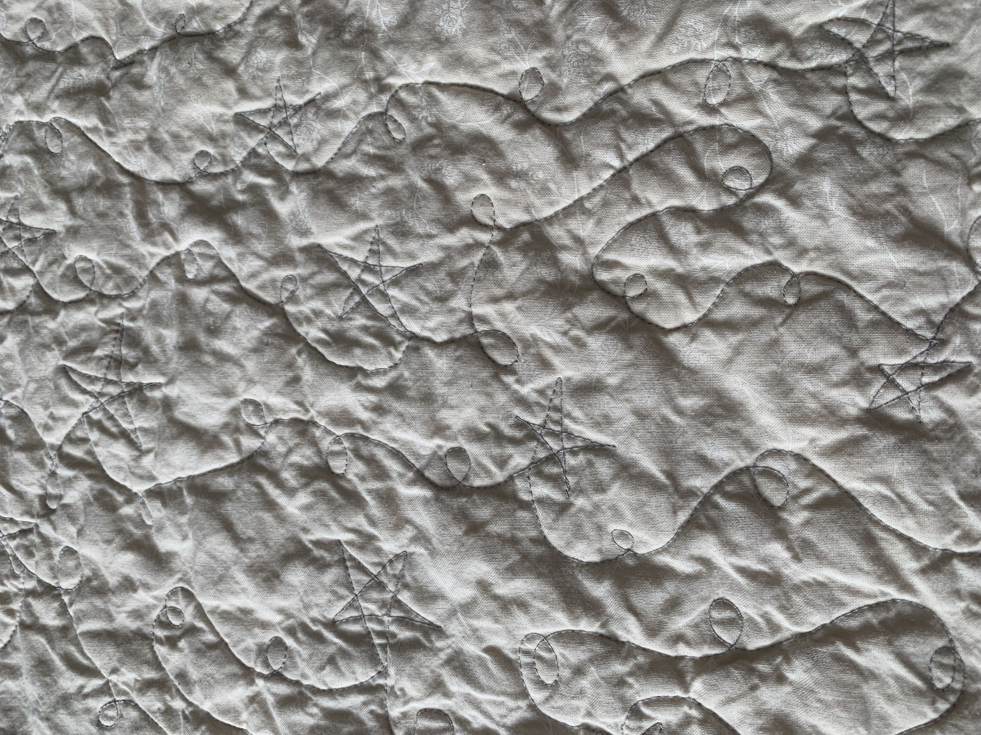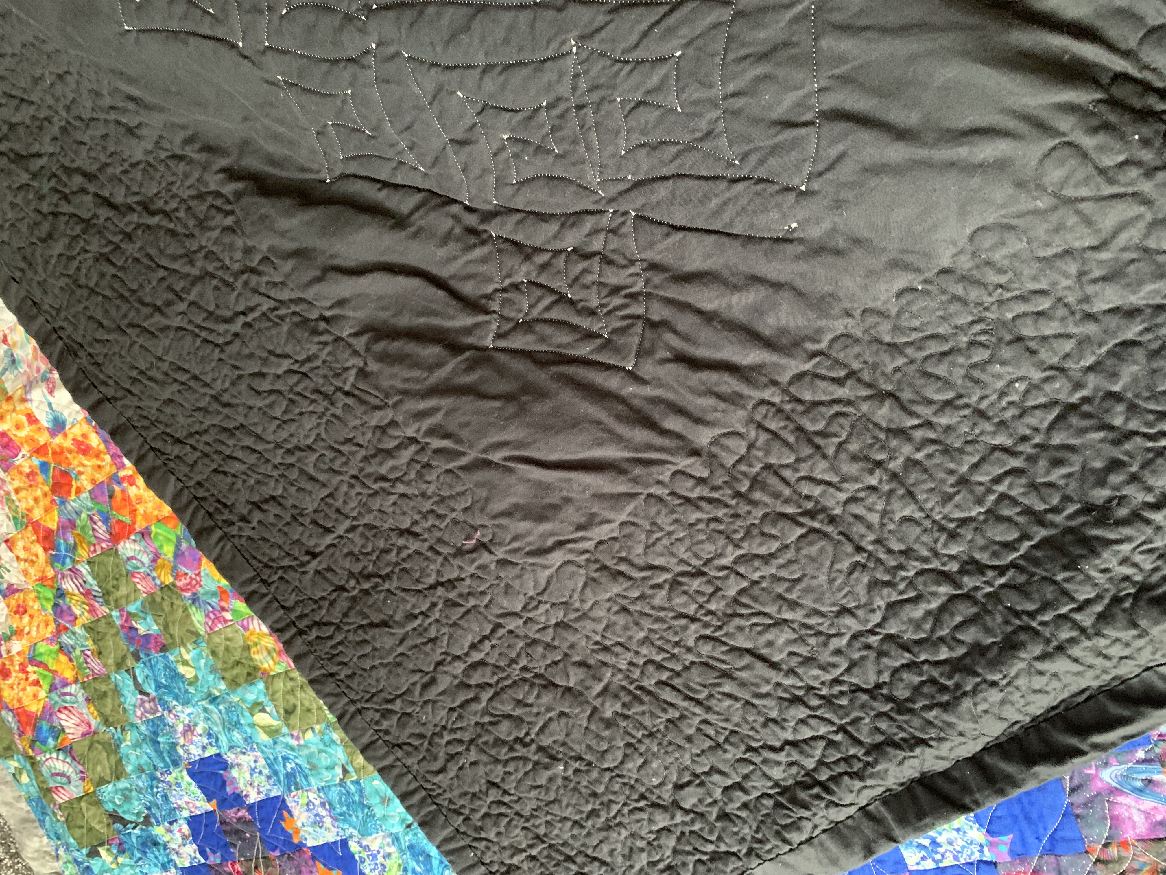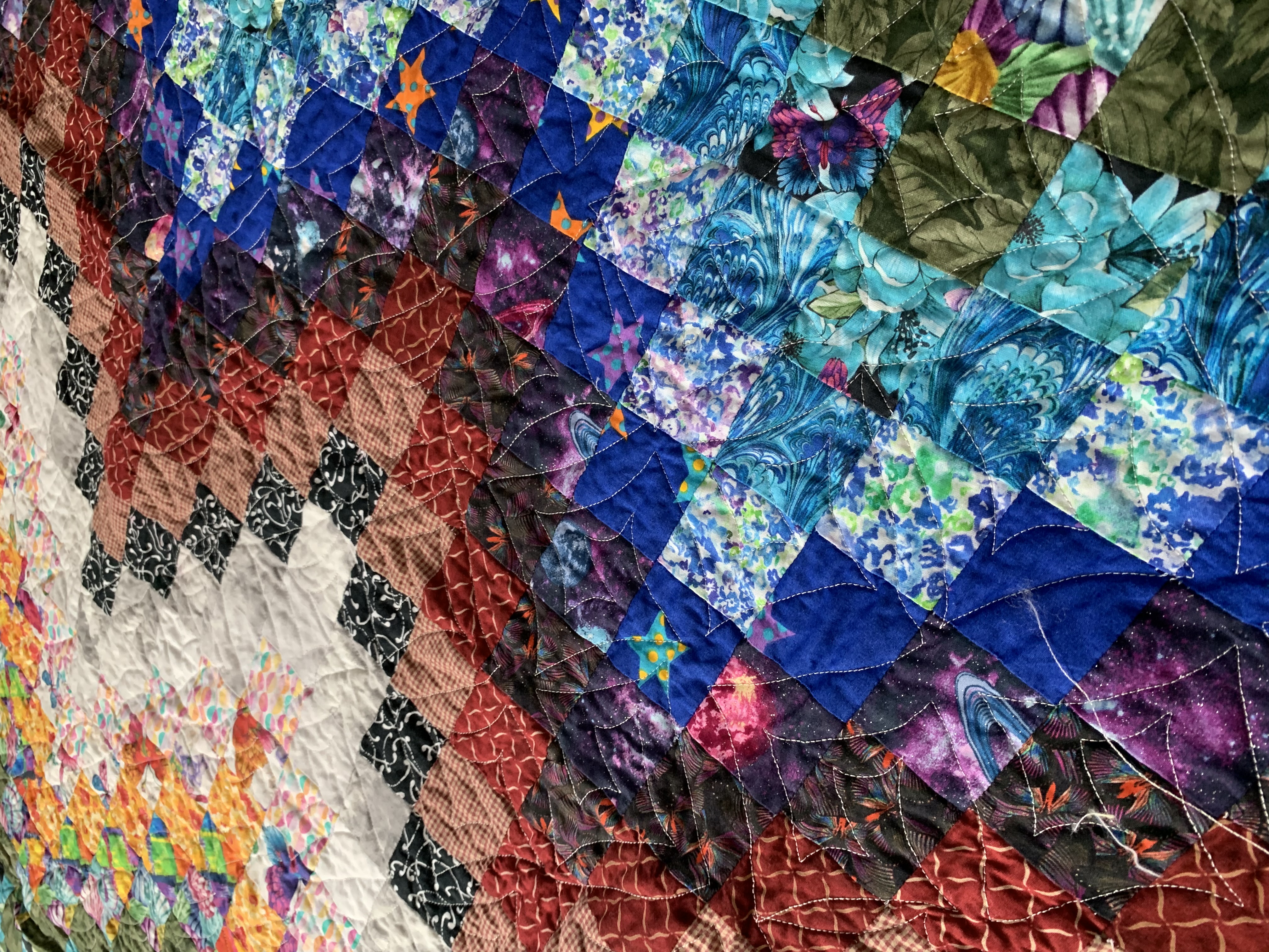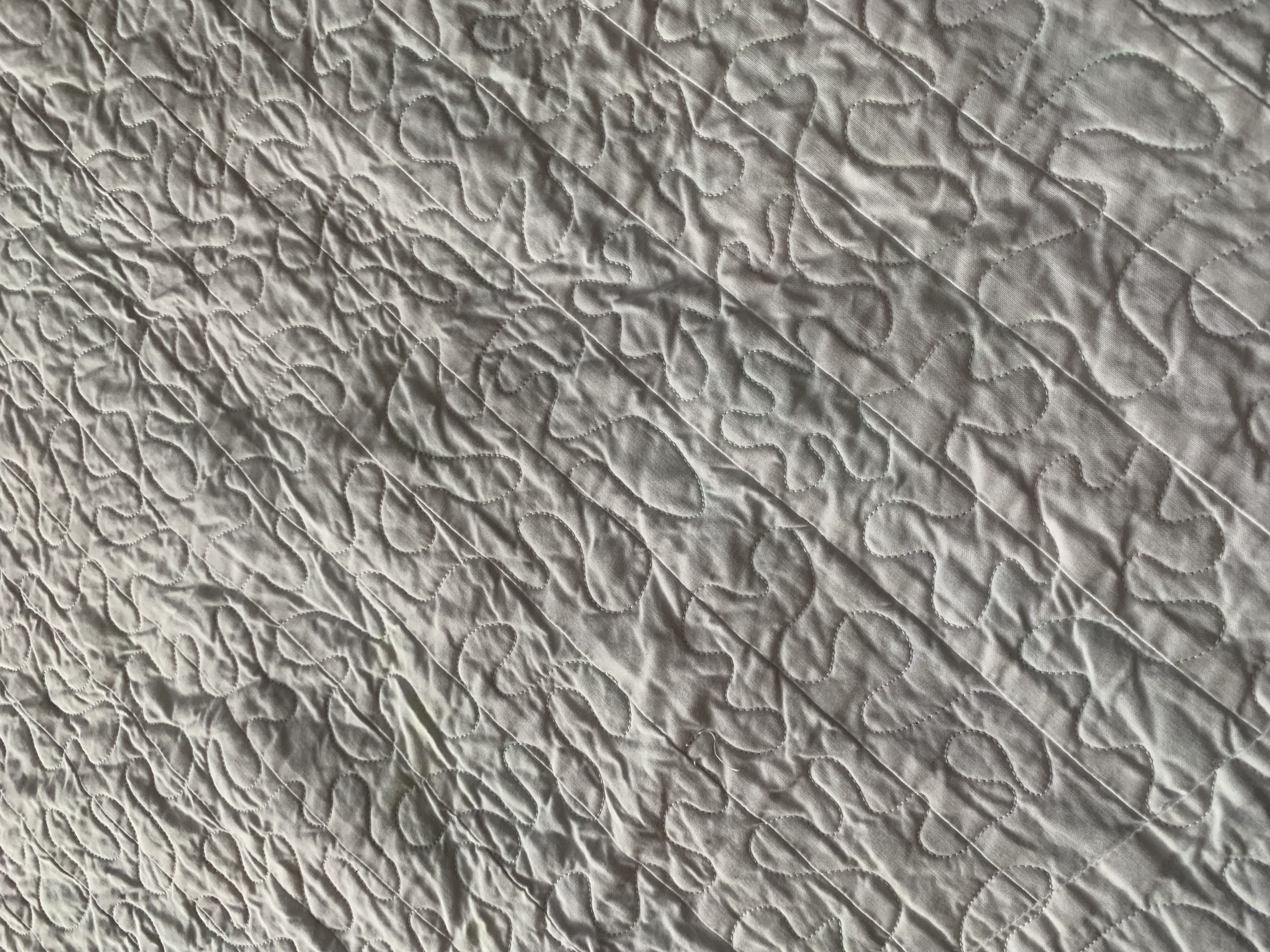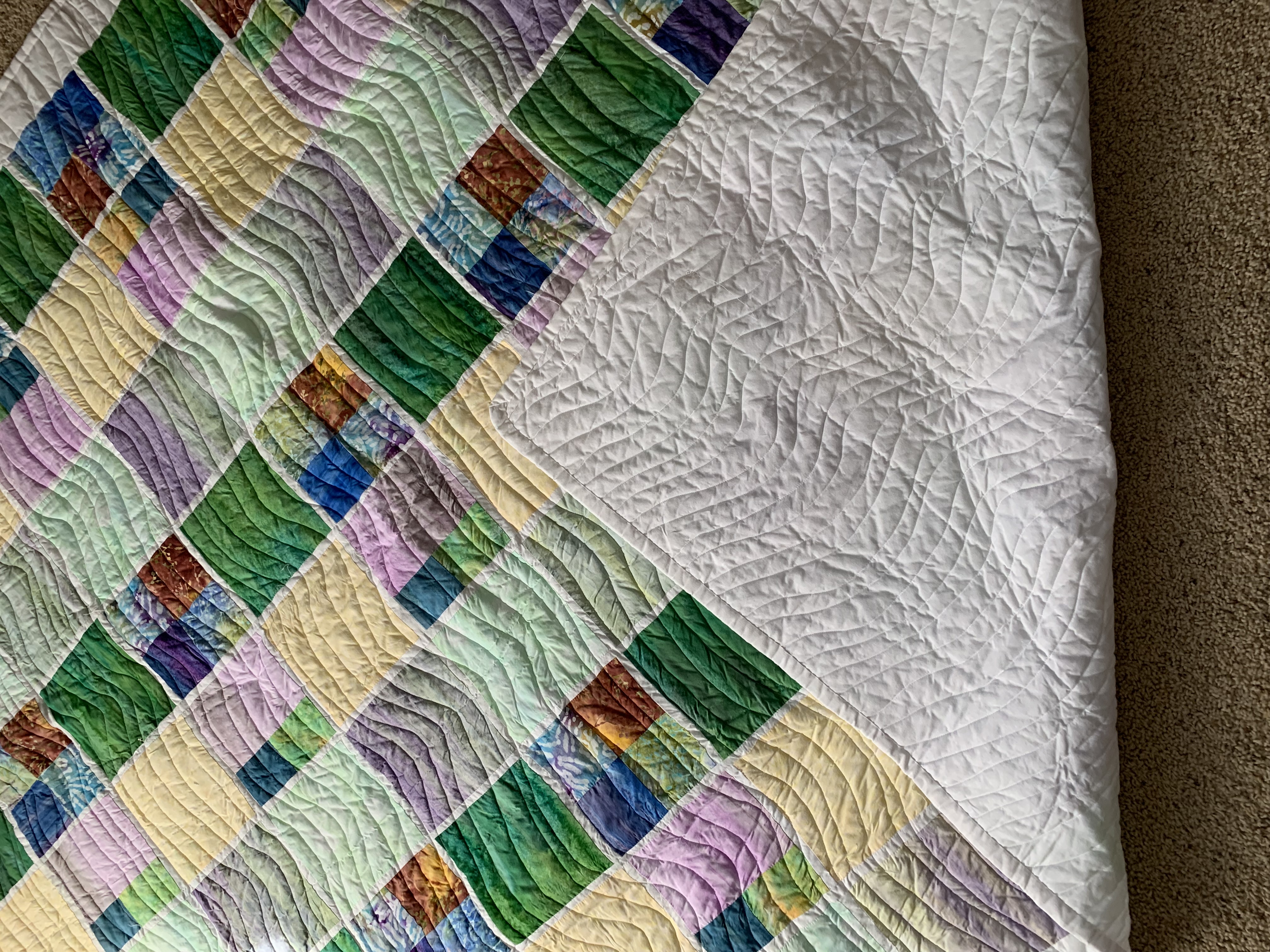 I have four quilts that are all in same batik fabrics and general pattern, with slight variations. All are top quilted with a waving pattern to provide a soft and gentle feel. Three of the four quilts have polyester batting for great draping. One has cotton batting for a warmer feel.