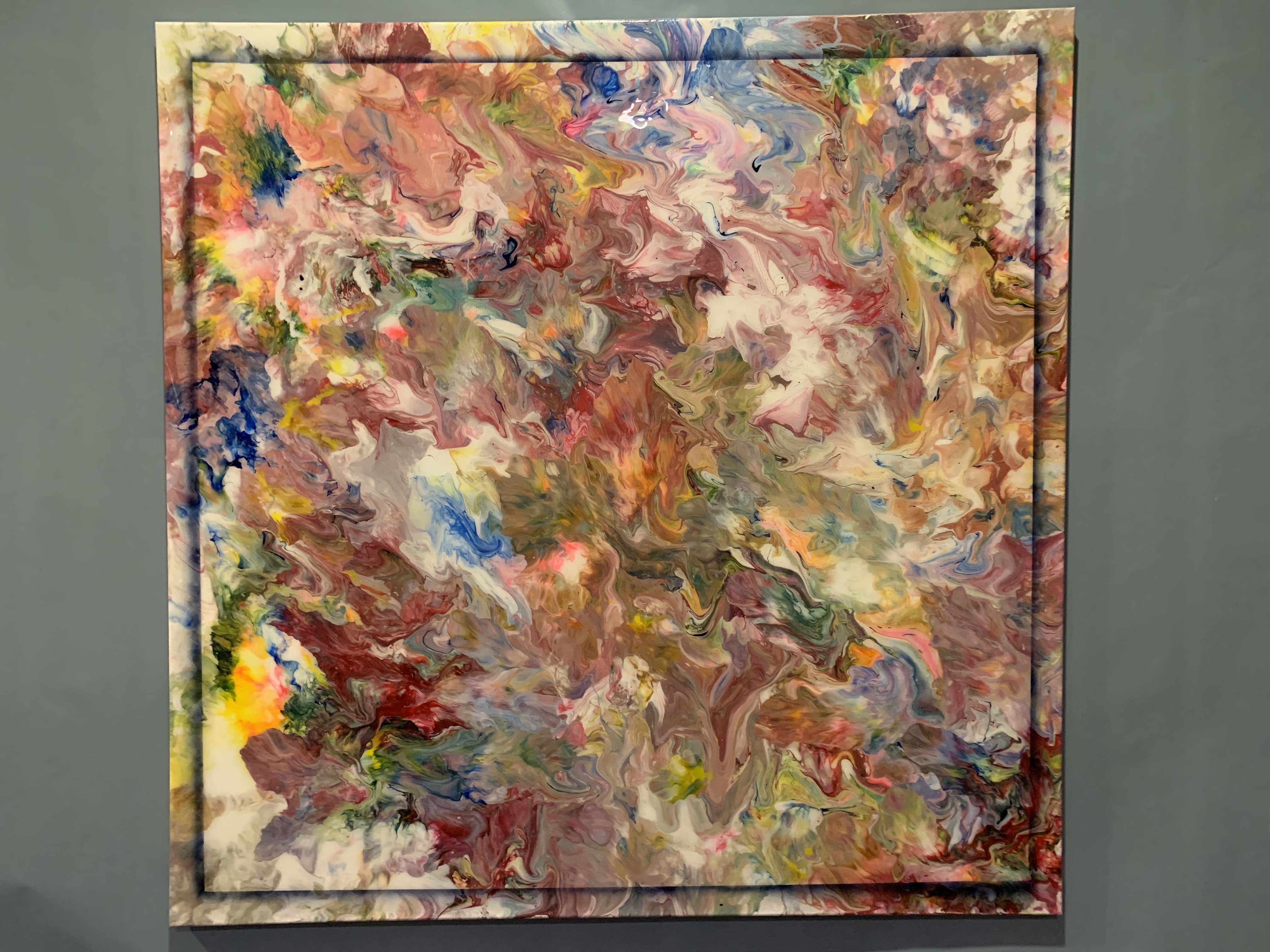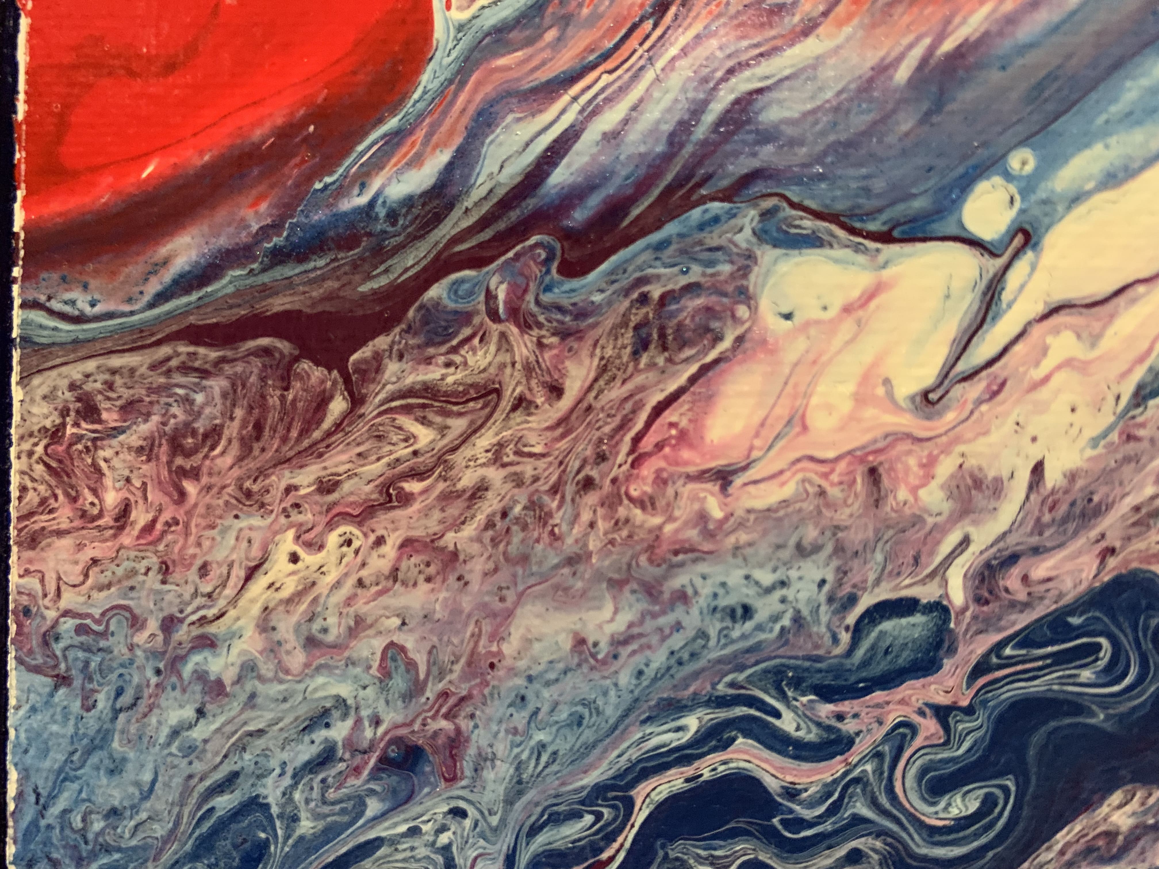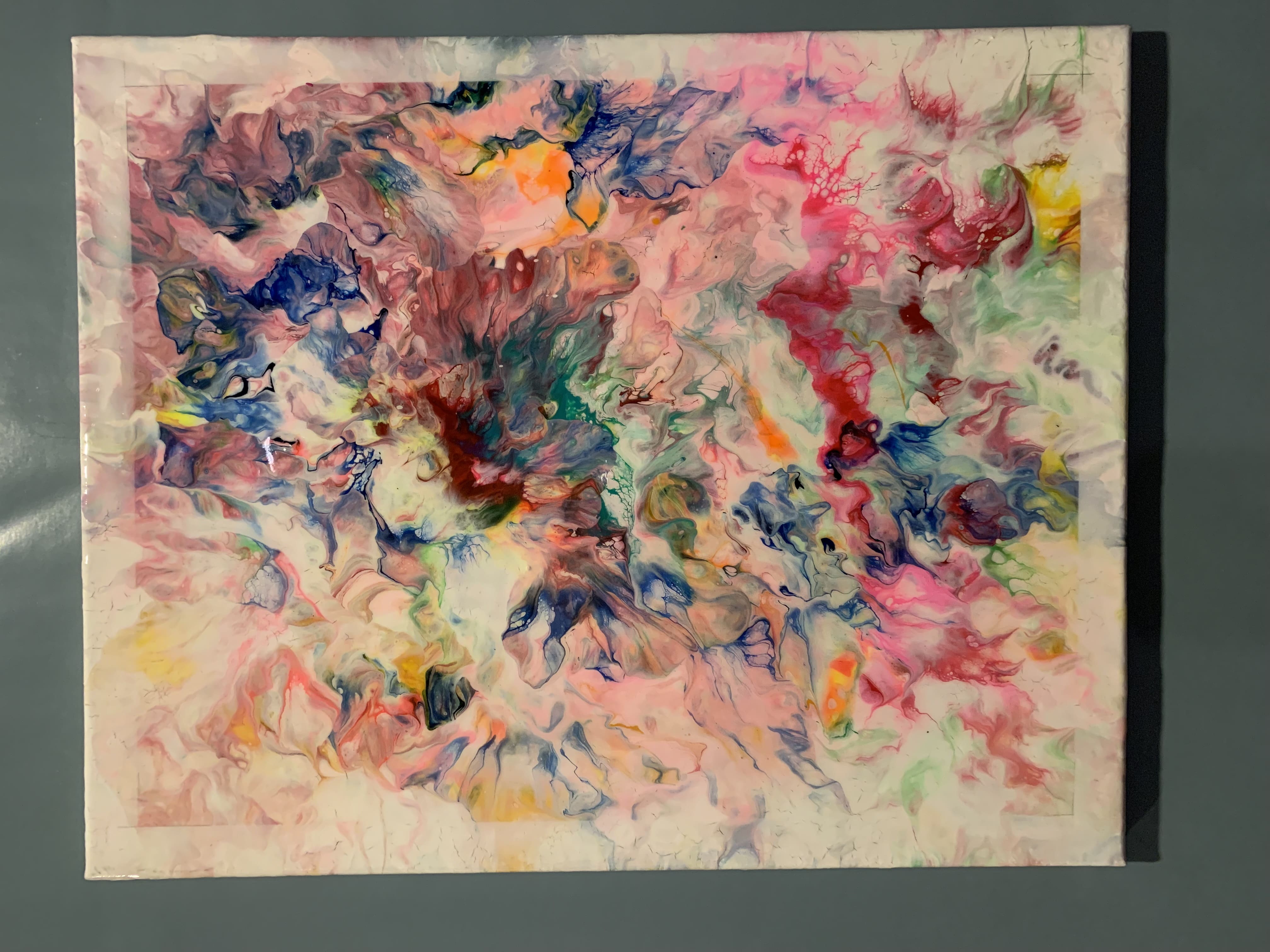 All paintings are on stretched canvas with acrylic base coats and a fluid pour. Sealed with a gloss resin or varnish.