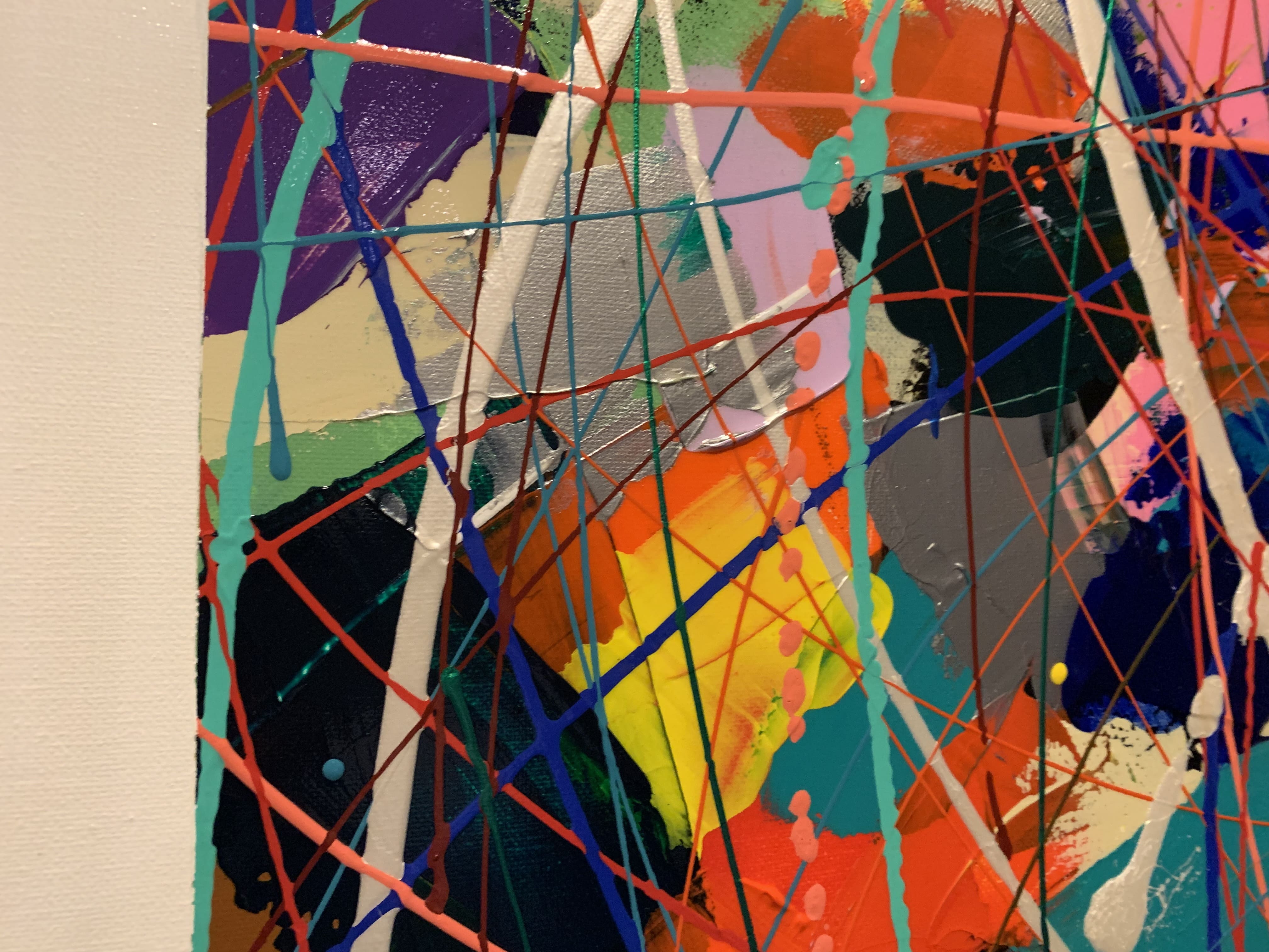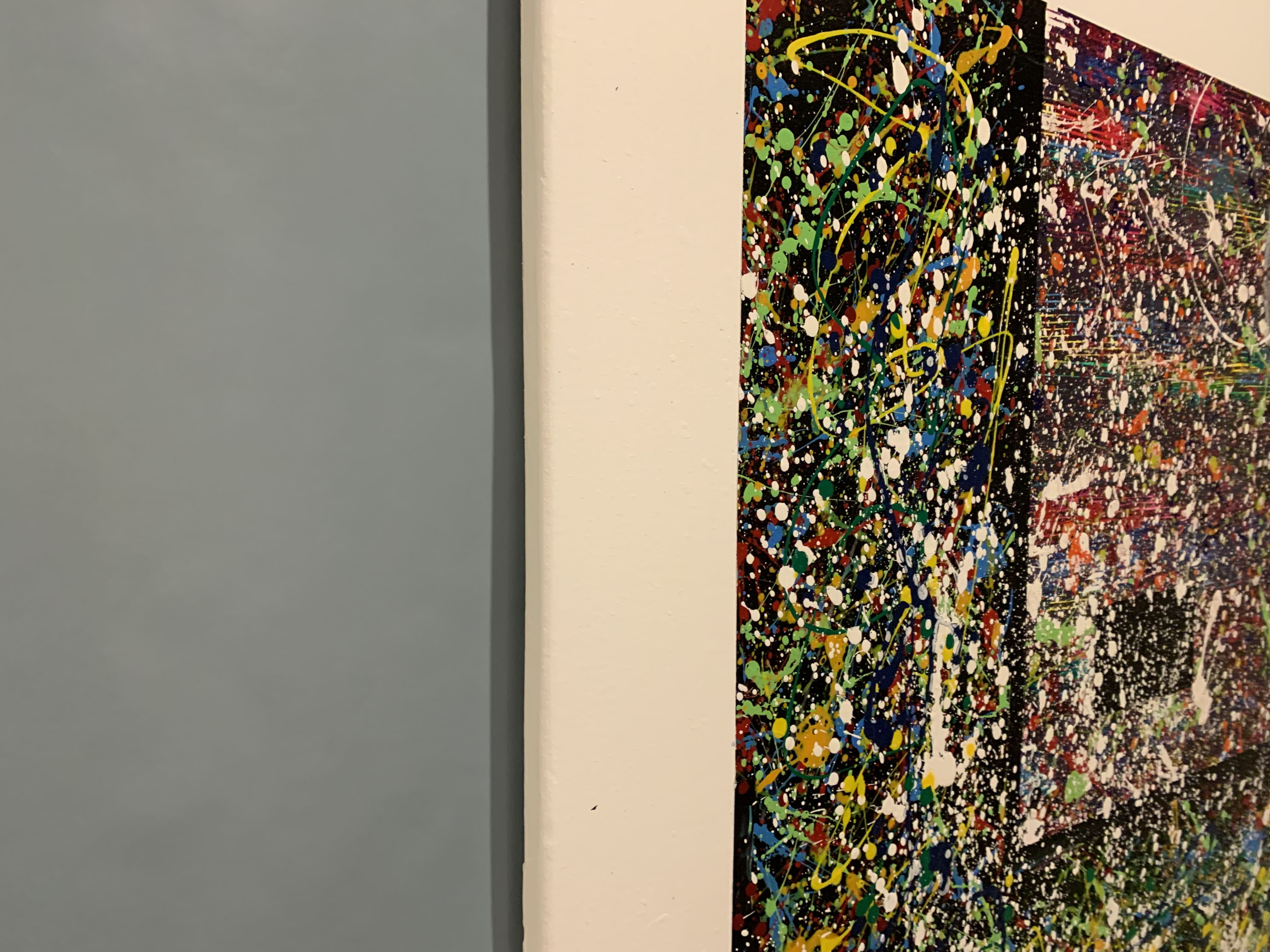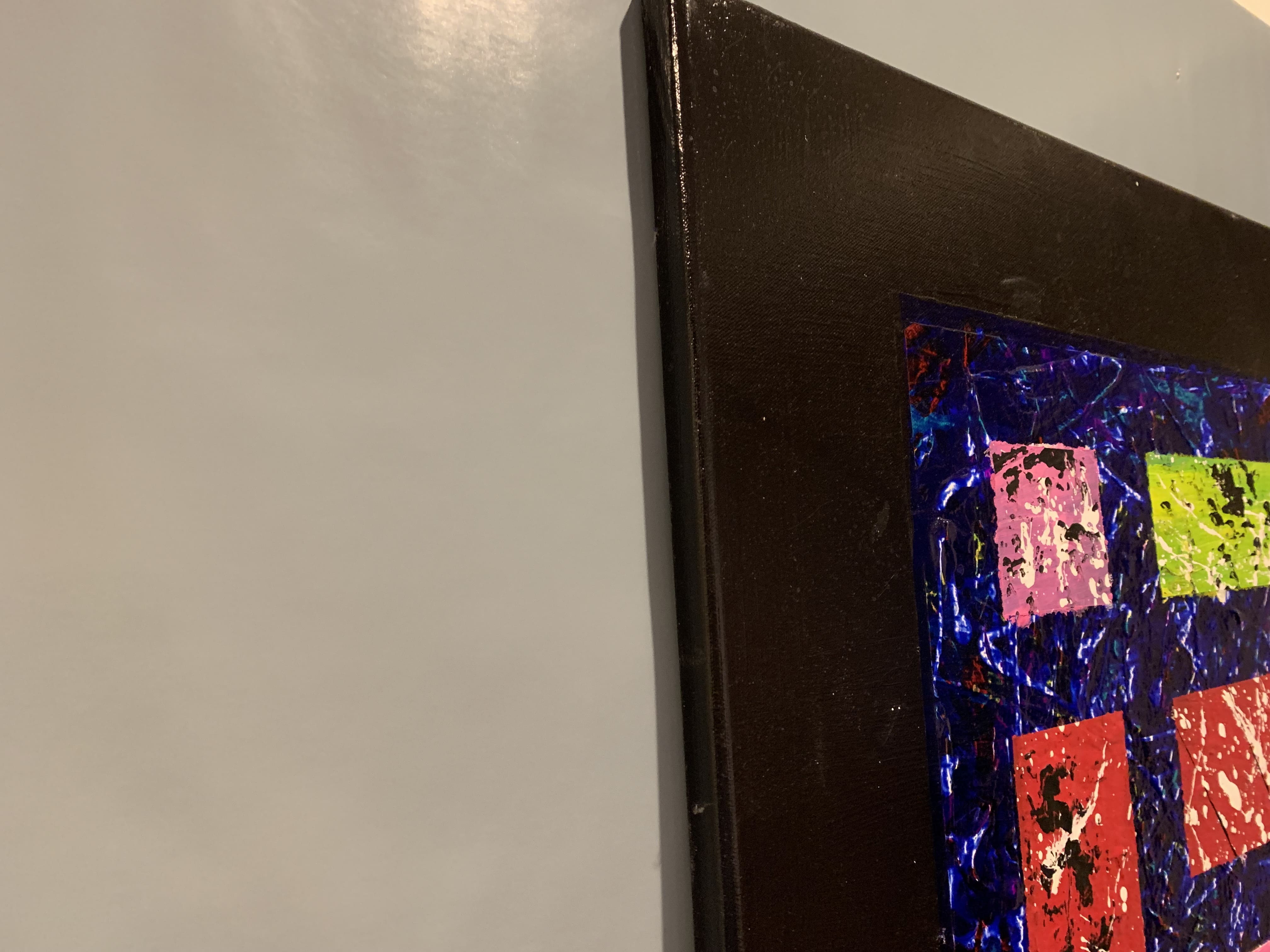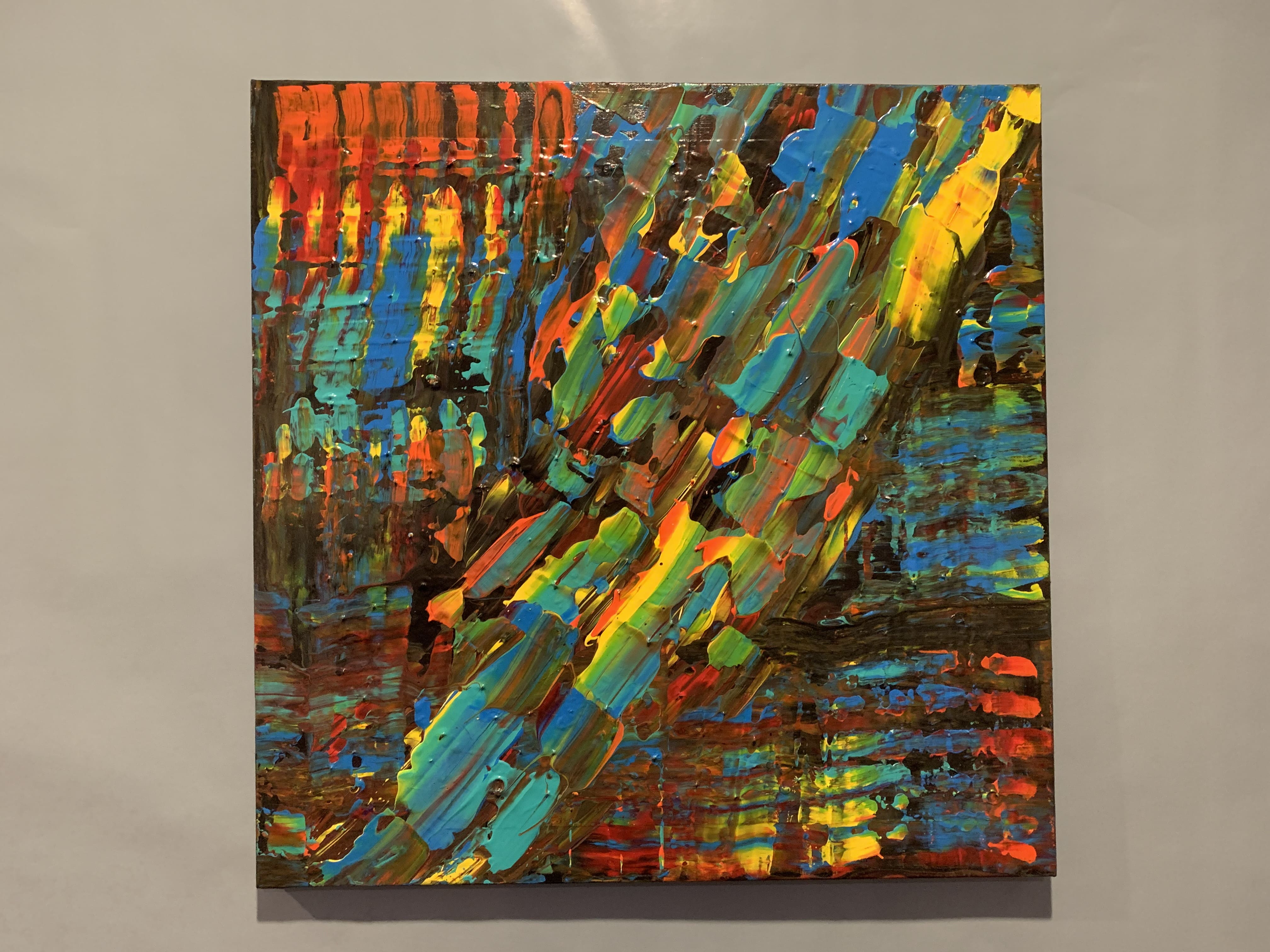All paintings are on stretched canvas with acrylic base coat and a variety of acrylic paint techniques applied. Sealed with a gloss resin or varnish.