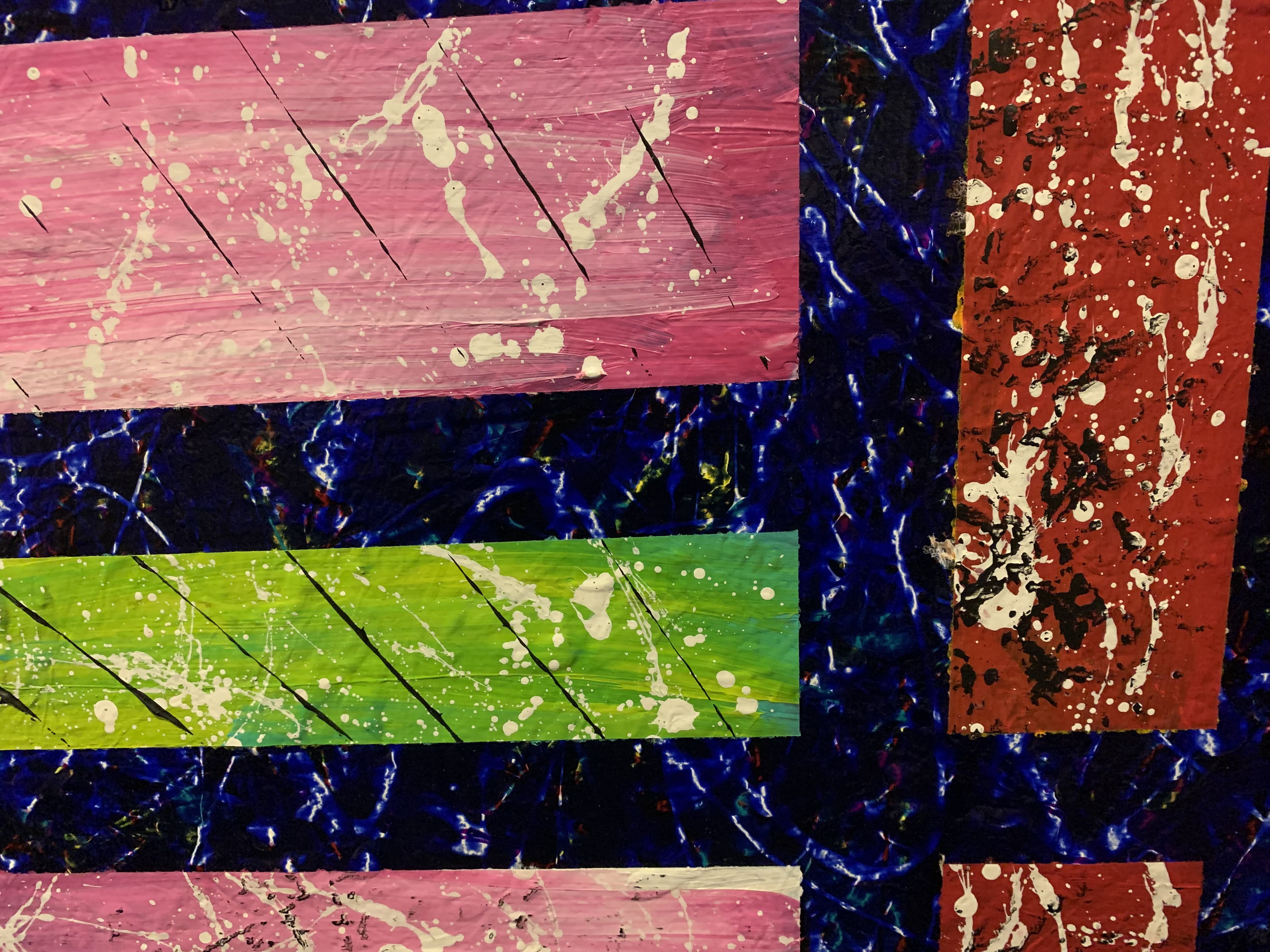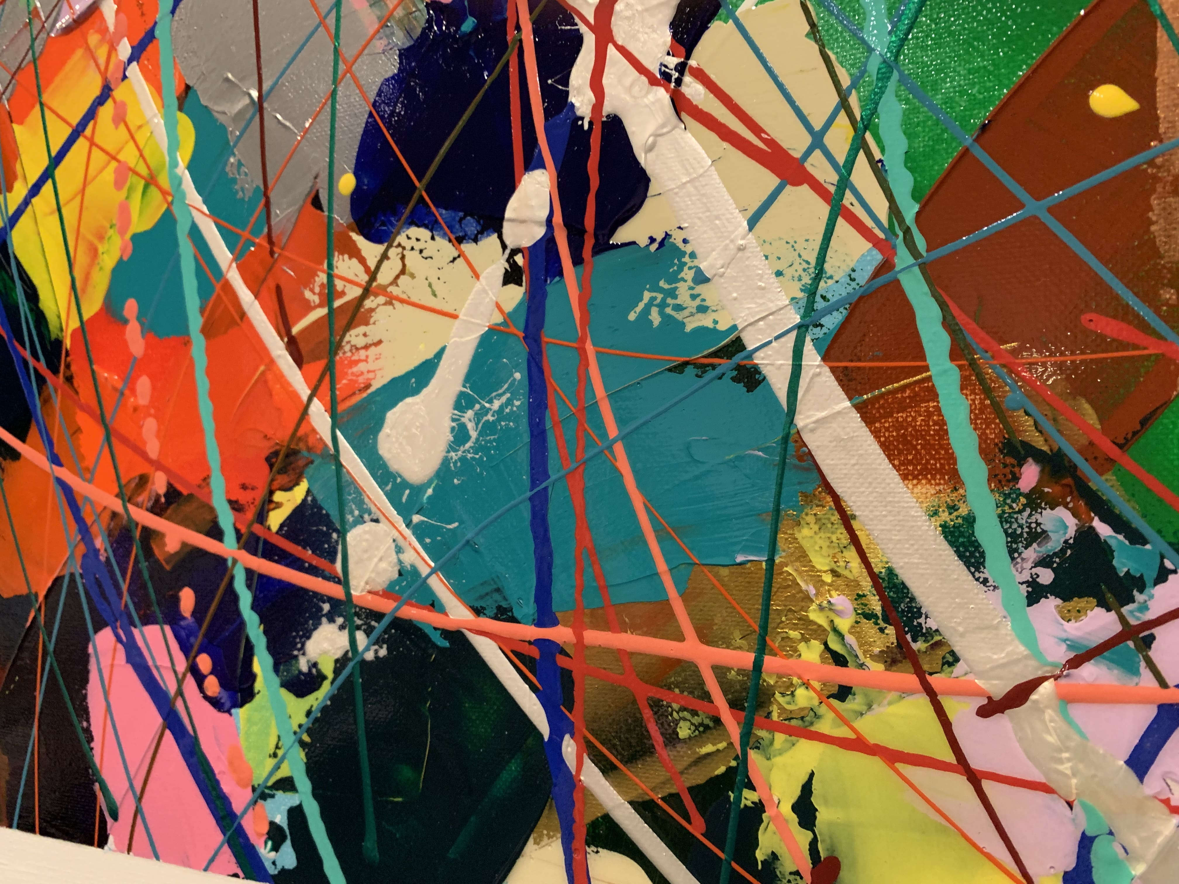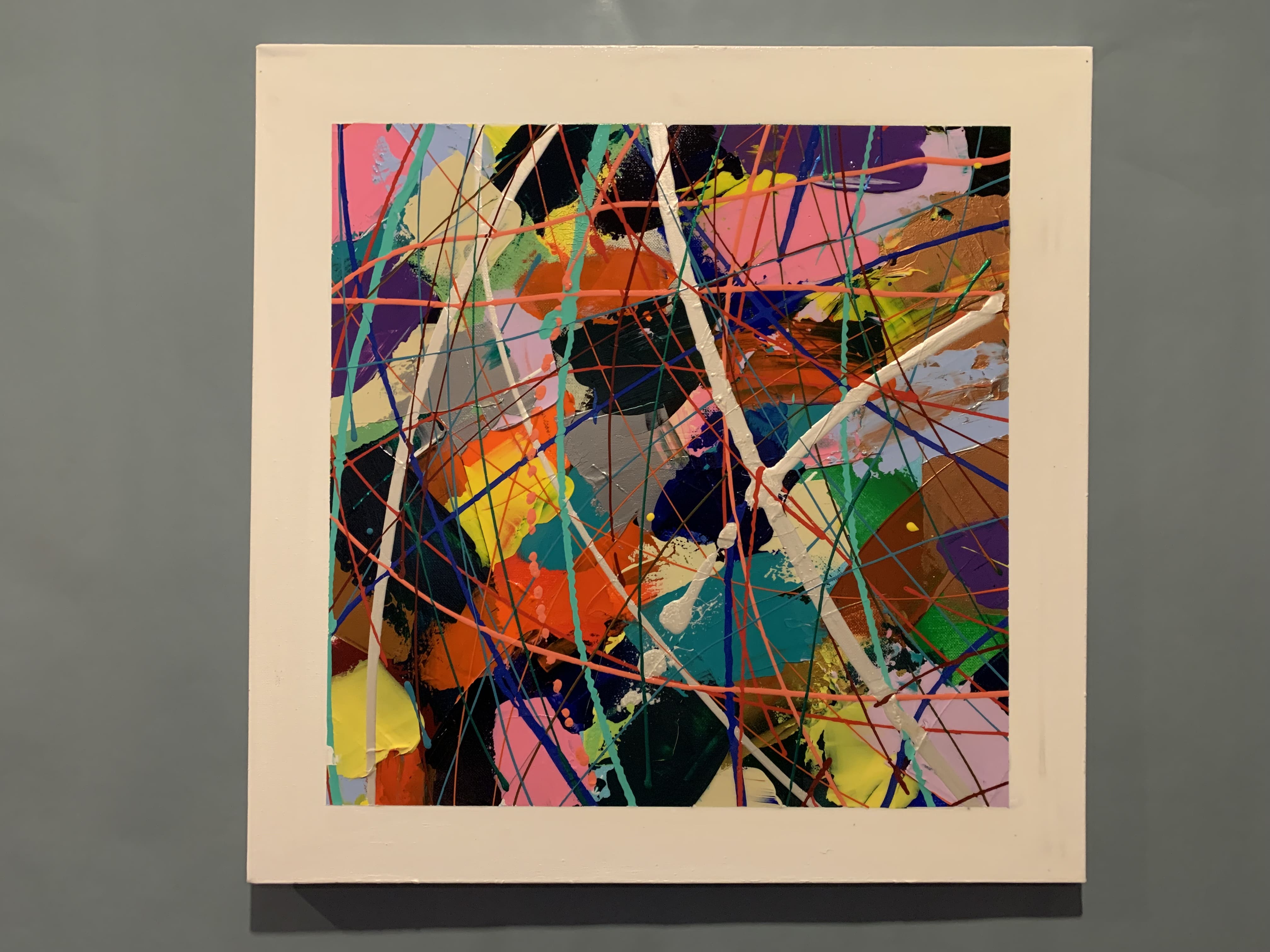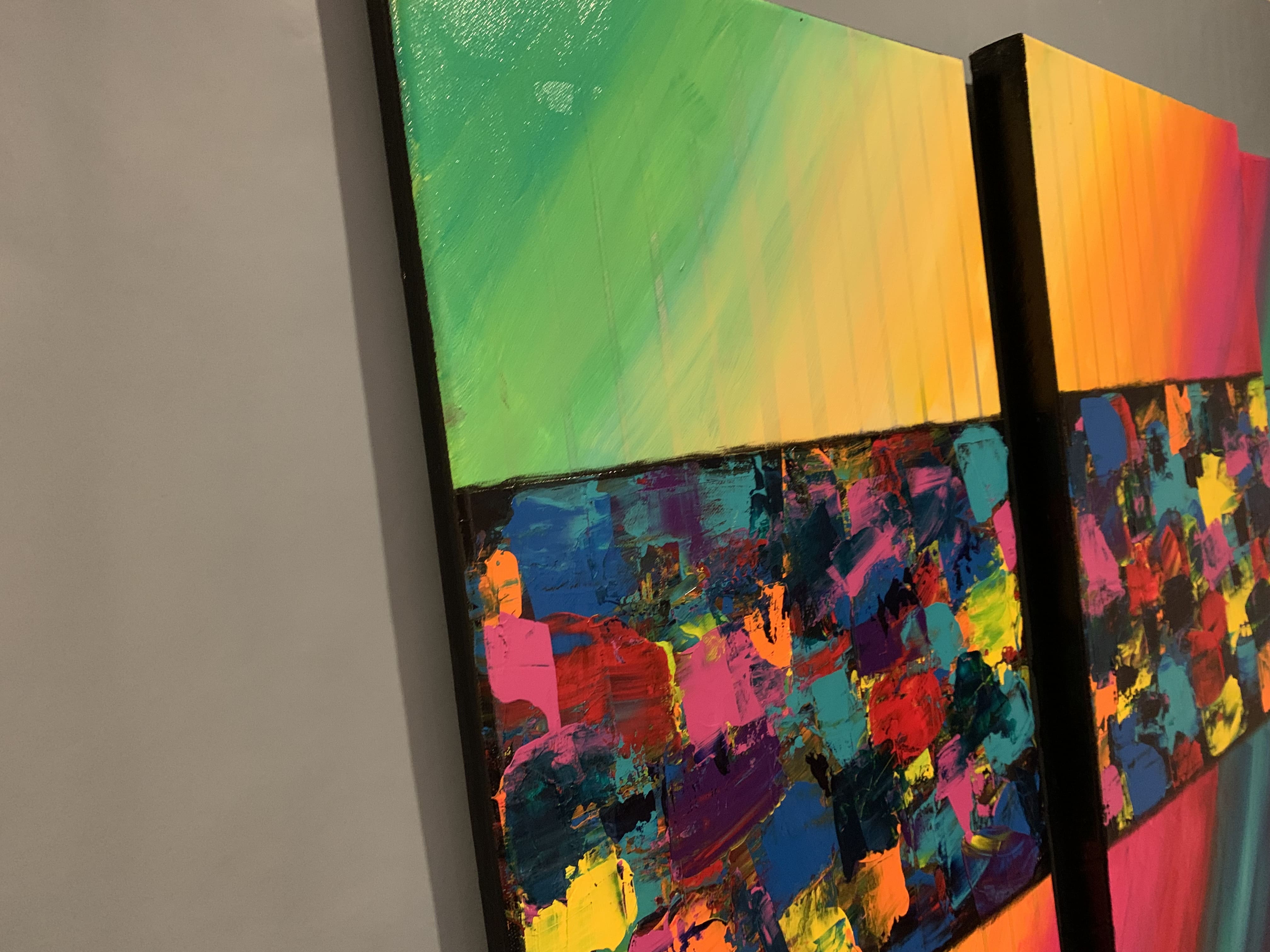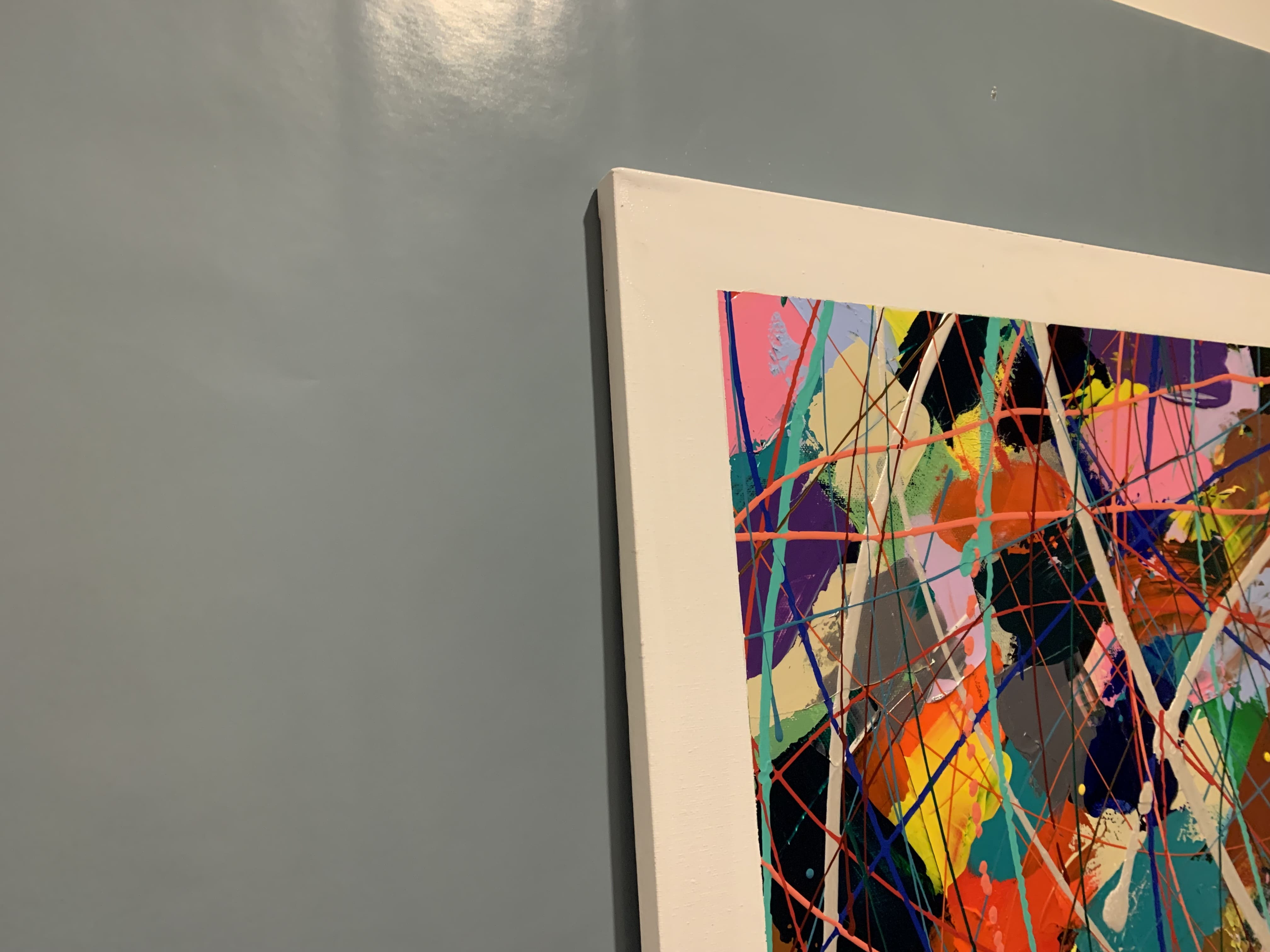 All paintings are on stretched canvas with acrylic base coat and a variety of acrylic paint techniques applied. Sealed with a gloss resin or varnish.