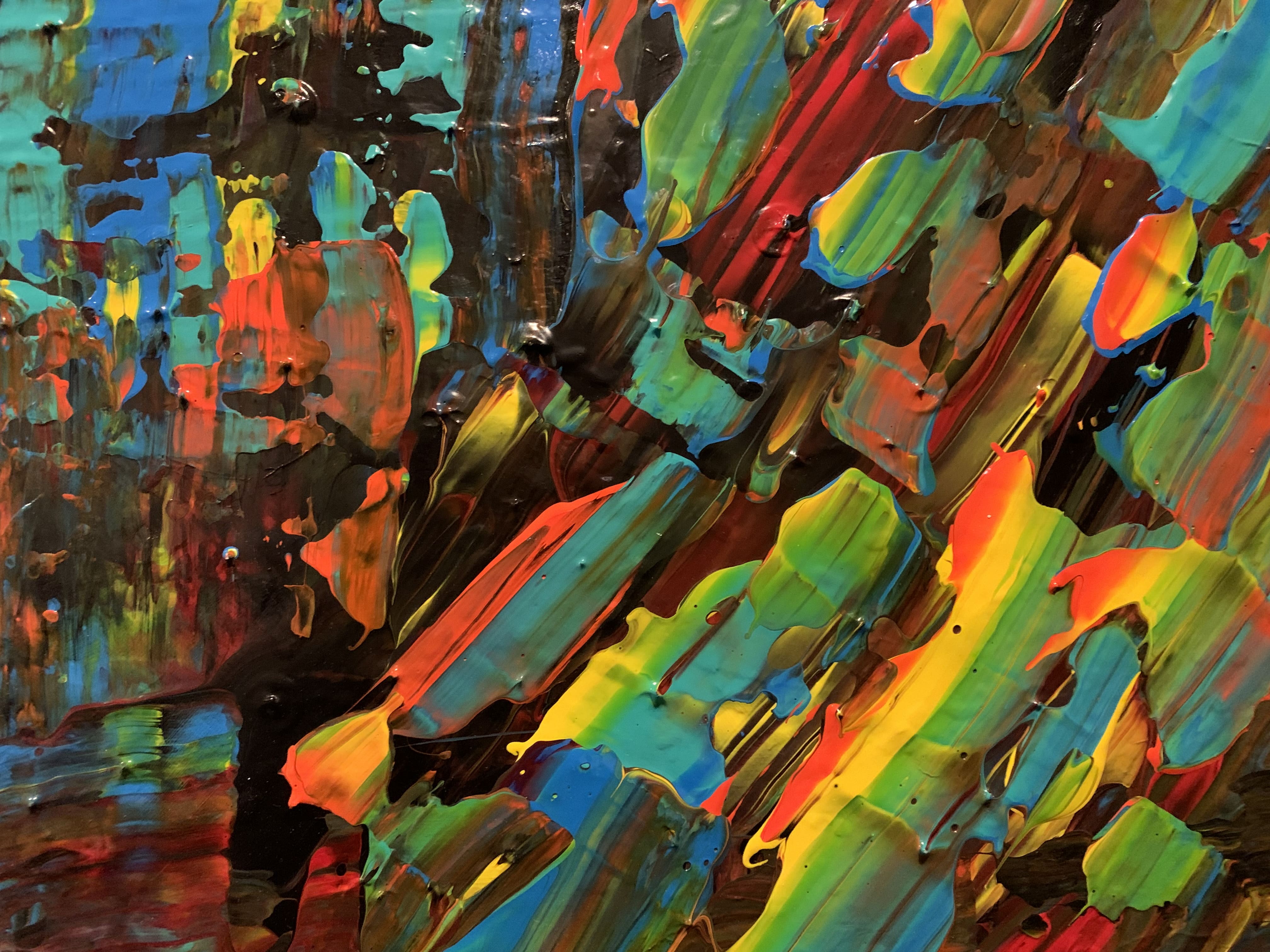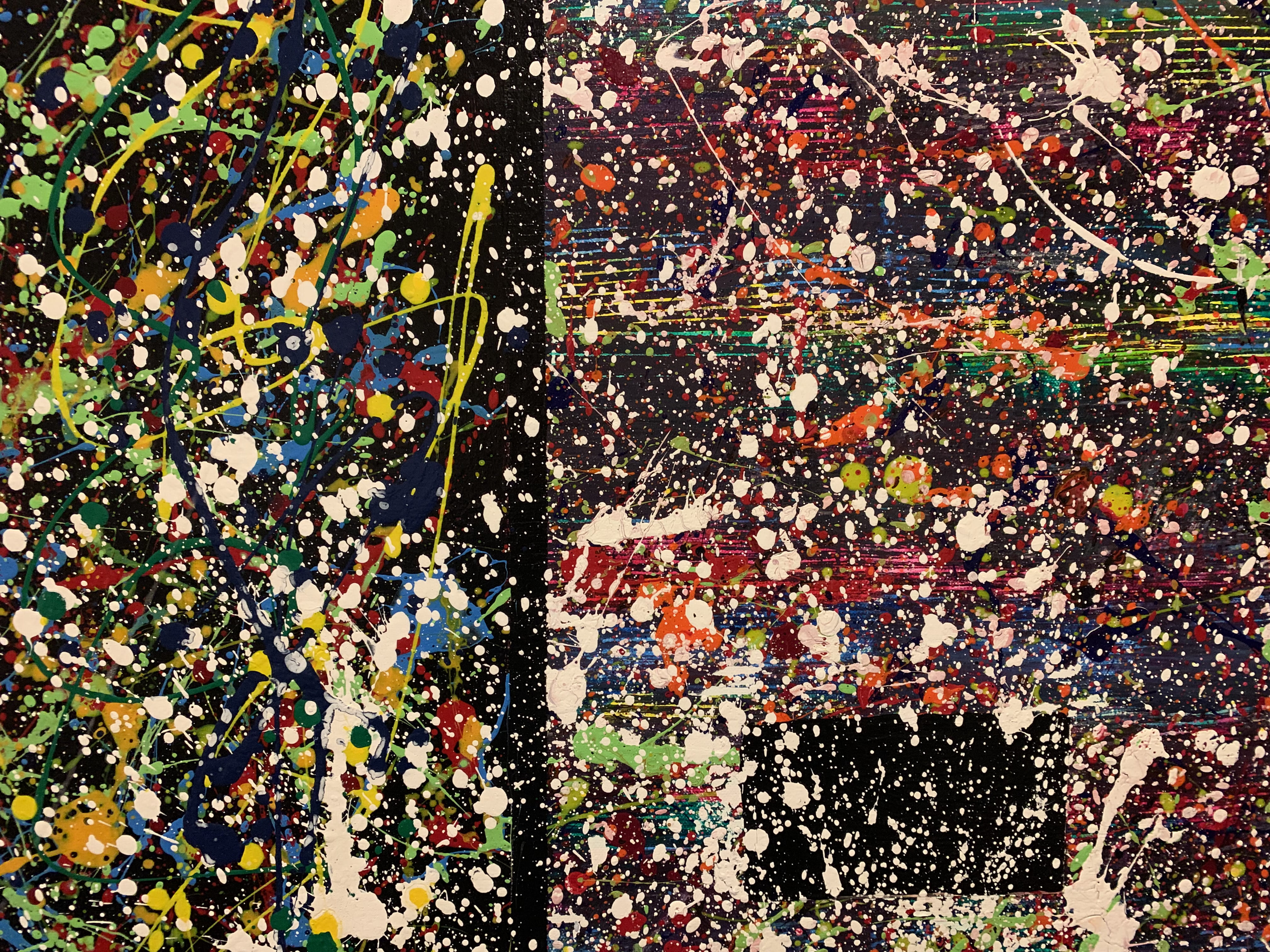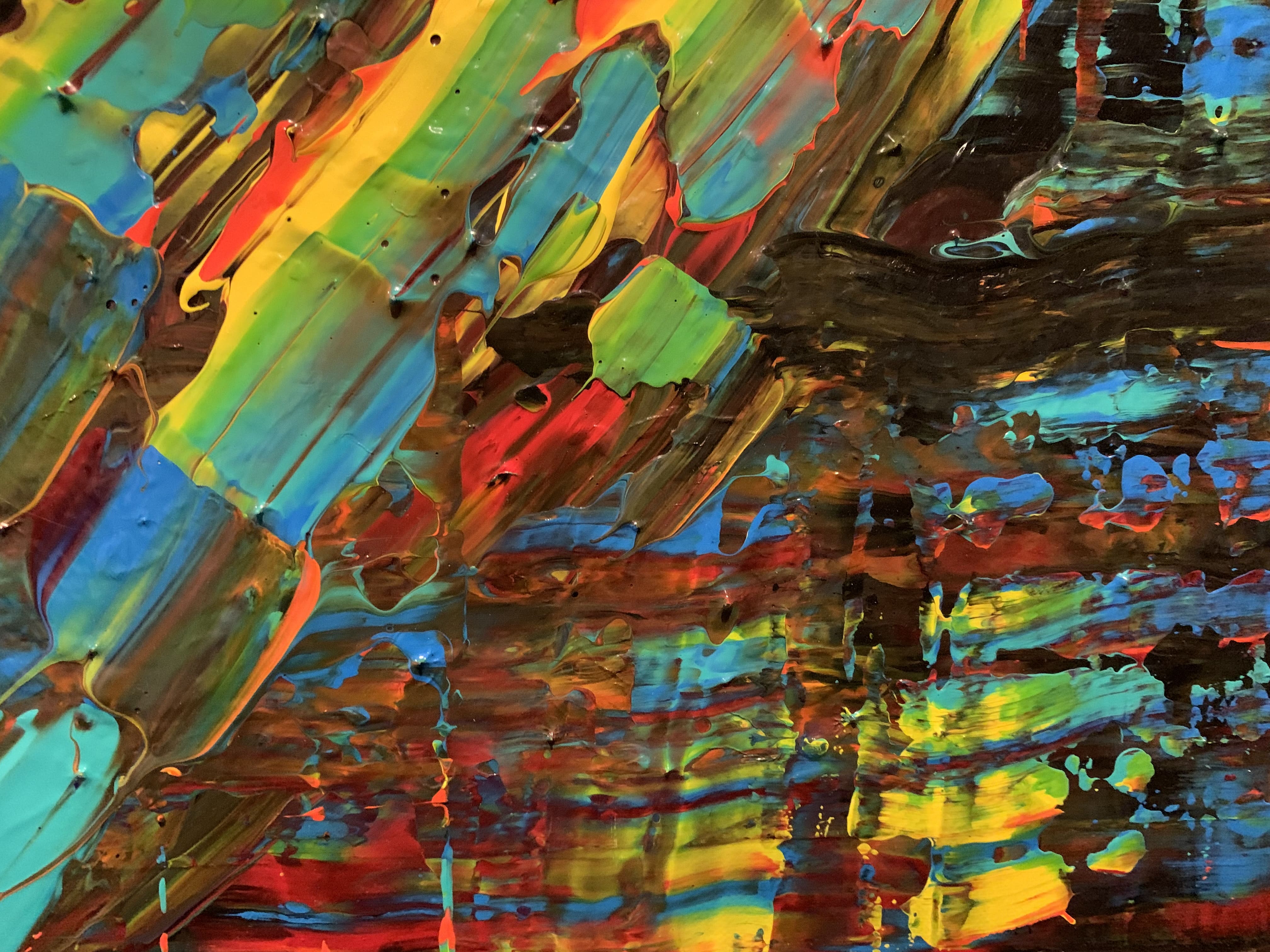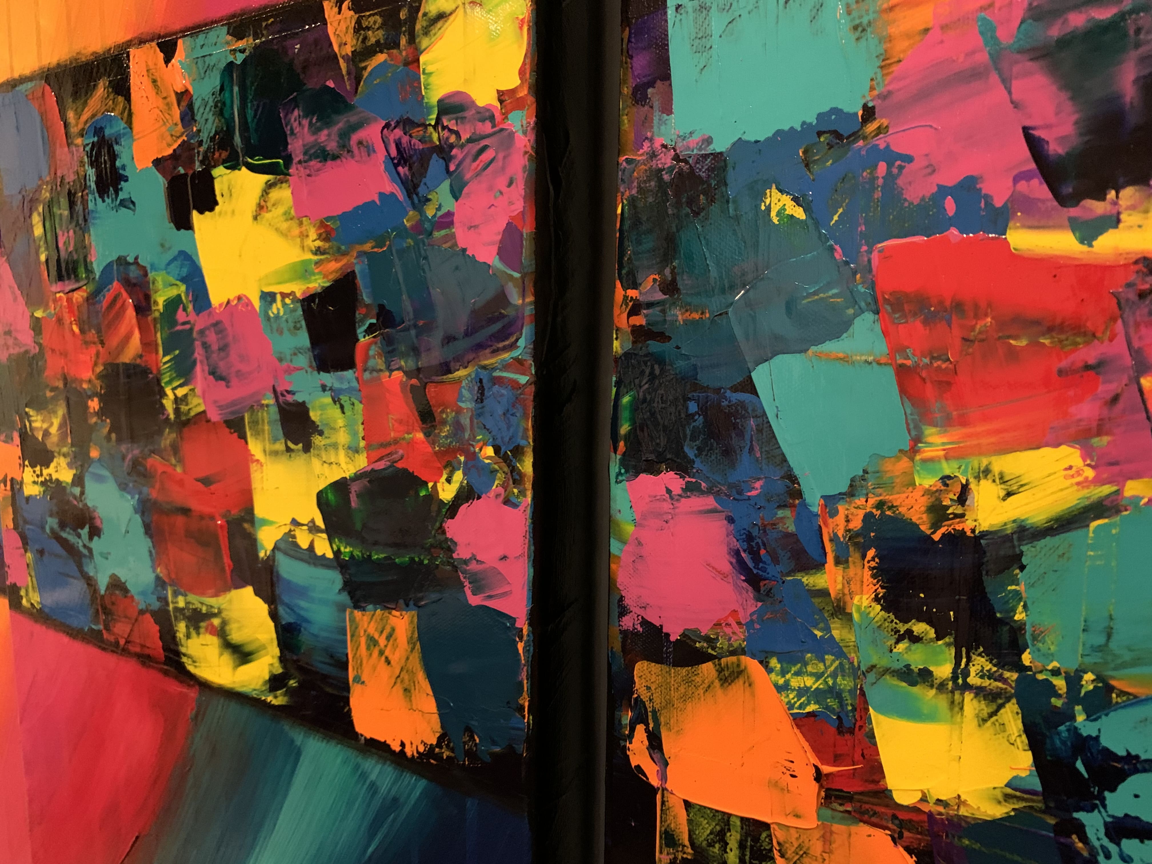 All paintings are on stretched canvas with acrylic base coat and a variety of acrylic paint techniques applied. Sealed with a gloss resin or varnish.